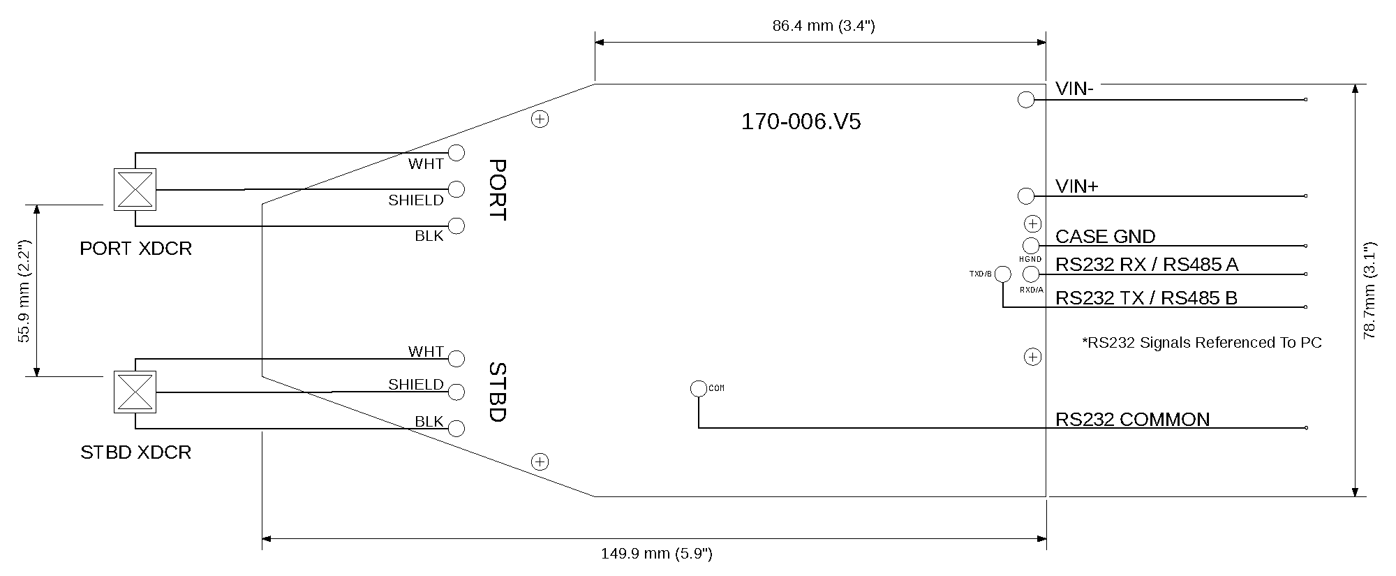 Transducers: ~300 g (0.7 lbs) each (with 24” pigtail)